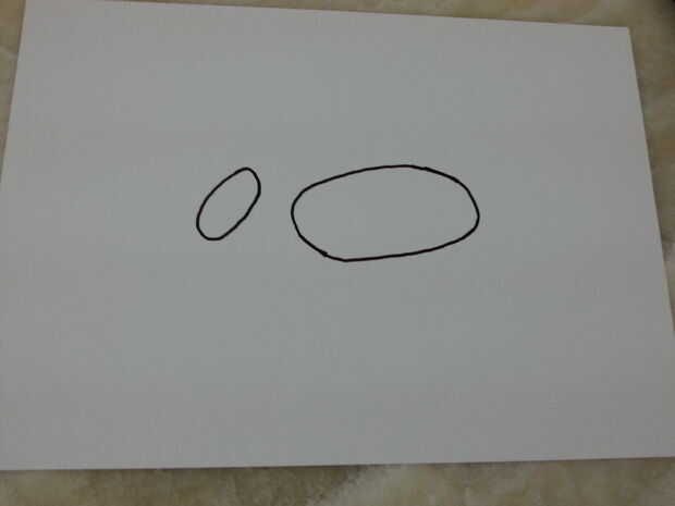 2 dibujar en forma de huevo sobre el papel, uno grande para el cuerpo de las ovejas otra más pequeña para la cabeza de las ovejas.