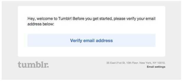 Si no han verificado tu correo electrónico primero, luego ir a su correo electrónico y haga clic en el mensaje de Tumblr para confirmar su dirección de correo electrónico.