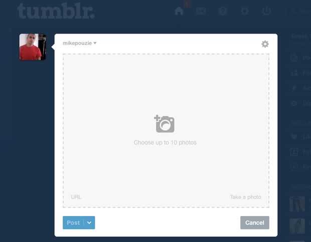 Ir a menú superior a la derecha de tu avatar y seleccione el tipo de medios que desea registrar. Si selecciona "Foto" lo llevará a un cuadro de busca en tu computadora y subir una foto.