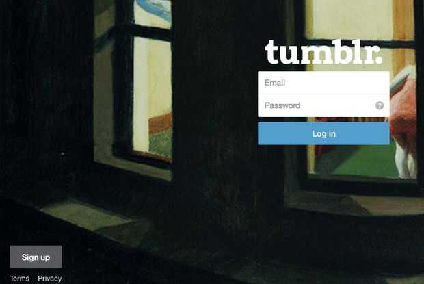 Ir primero a http://www.tumblr.com. Haga clic en "registrarse" en la esquina inferior izquierda.