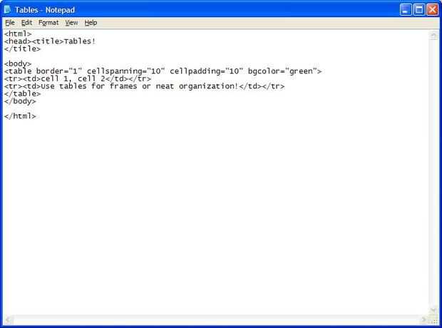 Eso es básicamente cómo comenzar una tabla. Para agregar una fila, usted necesita la etiqueta de fila de la tabla.
