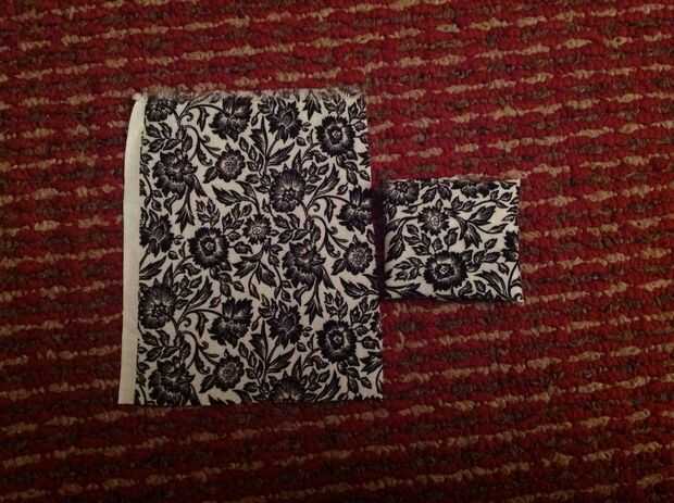Ok, este es el primer paso obvio, pero es también un poco en el lado difícil. Las medidas no tienen que hacerse, realmente no medí mi, simplemente globo ocularlo, pero para este tutorial, voy a dar las medidas. Esta pieza es de 6 x 5 pulgadas. Usted no tiene que preocuparse por las líneas que sean completamente rectos, si están un poco fuera, va a ser aceptable:) tenga en cuenta, este arco va a ser aproximadamente 1/4 del tamaño del material que tiene, así que decides cuán grande quieres tu arco que. El tamaño de la pequeña plaza es cuán grande será este arco. También, cortar una pequeña tira de material, tal vez unas poco menos de dos pulgadas.
