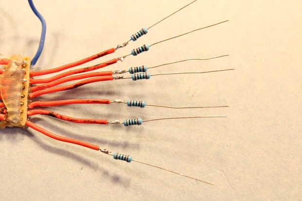 En lugar de agregar una resistencia a cada LED, solo agregare una resistencia a cada fila. Usaré una resistencia de 100 ohm. (hacer matemática, es igual a 83.33--)