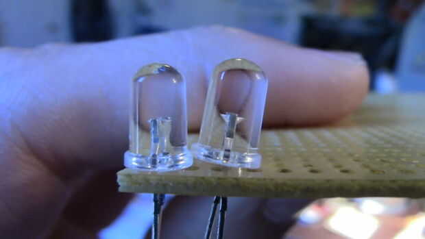 Ahora tenemos una plantilla de algún tipo que nos ayude a colocar los LEDs. Haz tu perf y coloque los LEDS en los agujeros, como en la foto. Entonces, tomando hacia fuera, utilice un marcador negro para dibujar donde van los LEDs. Ahora lo que voy a decir es un poco difícil decir con el texto, así que paciencia. Hay una razón específica por qué pongo los LEDS de la manera que son. Tal vez se pregunte, por qué no puse los LED hacia los lados. Bien la razón de ser es que los LEDs tienen una pequeña muesca en el lado del cátodo. Ya que los LEDs son una lucha apretada, este final plano pequeño sobre el cátodo permite el otro LED a levantarse justo a su lado. Si se pusieron hacia fuera lateralmente, no habría ninguna ranura plana y los LEDs no se sentarían plana todos juntos en el tablero ya que son demasiado cerca de uno al otro. Realizar la prueba, y verás lo que estoy hablando. Espero que entienda!