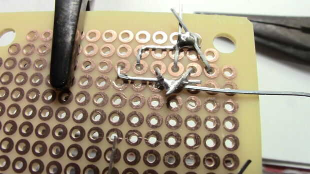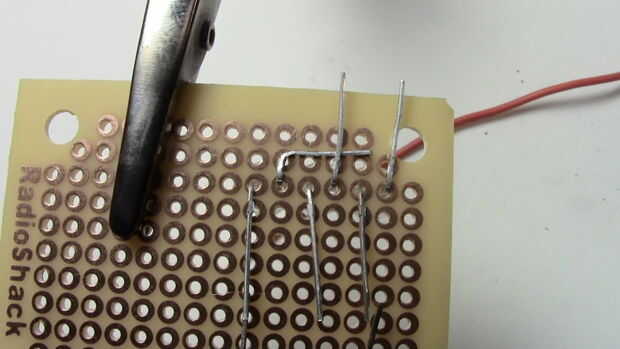 1. ahora, este paso podría ser un poco complicado. Con unos alicates, doble el plomo del cátodo final en ángulo recto, frente a los otros conductores negativos. Vea la foto.