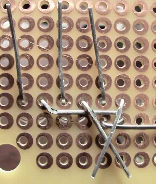 2. doblar los otros conductores para formar una X sobre un agujero. Lo sentimos, me olvide de tomar una foto de la primera (bueno, estaba tratando de resolver esto!). Basta con mirar en el segundo.