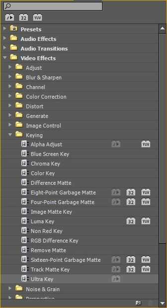 Debajo de 'efectos visuales', luego 'incrustación' encontrar ultra clave y arrastre hacia el clip con la pantalla verde real.