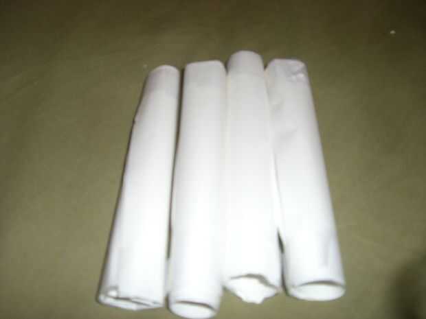 4 trozos pequeños de papel del rodillo. luego con cinta adhesiva cada uno en los extremos. luego con cinta adhesiva en pares. ahora la cinta los pares juntos en un ángulo. Esto es difícil, así que no te frustres.