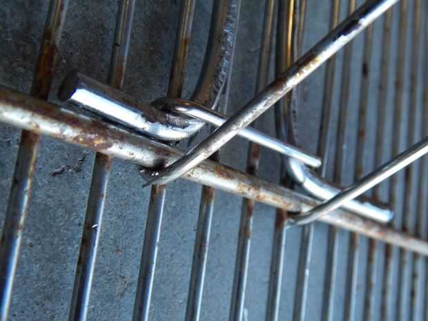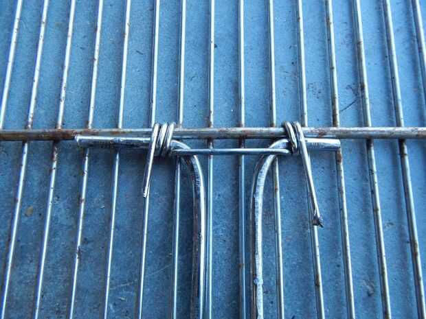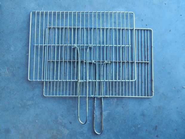Los mandos tienen dos funciones. Son para recoger y girar la rejilla, y forman el arreglo de bloqueo que mantiene la parrilla cerrada y abrazaderas de las salchichas en posición.
