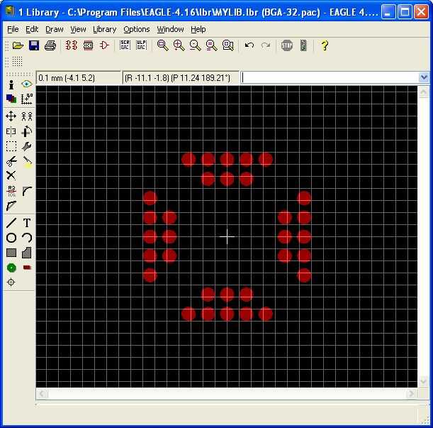 borde. Con rejillas espaciadas apropiadamente, usando el ratón para colocar las almohadillas puede ser muy rápida precisa. Alternativly, en la ventana de comandos si puede escribir