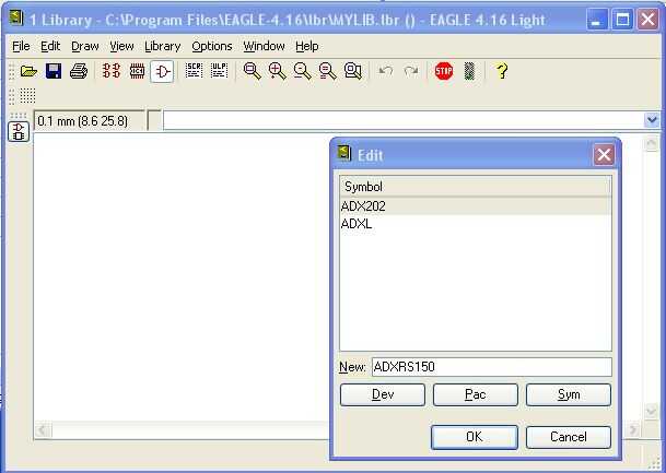Haga clic en el símbolo de botón y añadir un nuevo símbolo. Este paso es idéntico al paso 7, excepto su para un símbolo no un packge. El símbolo es lo que aparecerá cuando se dibuja su esquema. El esquema es una representación fundamentalmente diferente de tu circuito, luego el diseño (o paquete). El paquete tiene que coincidir con la hoja de datos, ya que representa la entidad física y tiene un gran impacto en el diseño del baord. El esquema debe diseñarse para que sea fácil de leer y necesita no ser una representación del prefecto de la devcie (en términos de tamaño). Para pernos de examplep sin conexiones no deben colocarse en el esquema.