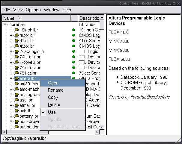 2) Añadir a la biblioteca existente en el panel izquierdo del panel de control haga clic en la biblioteca que desea añadir la parte a y seleccione abre.