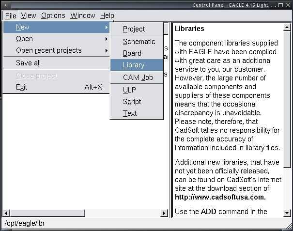 1) para crear una nueva biblioteca de ir a la barra de menú y seleccione Archivo -> Nuevo -> Biblioteca