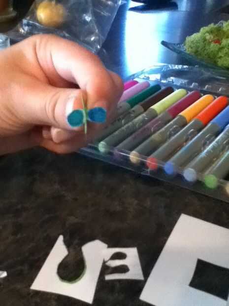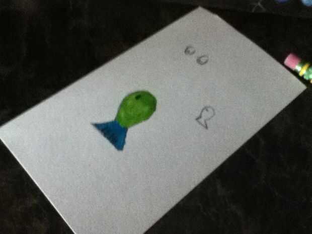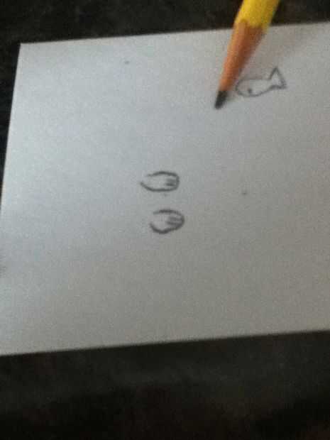 Dibuja un pez en un pice de notecard. Color con marcadores permanentes. Cortar 2 aletas poco pero deja el libro blanco en el borde. Doble el papel blanco y pegar las aletas a los peces pero asegúrese de que las aletas sobresalen como el pez está nadando.