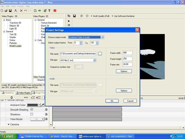 una vez que estés satisfecho con cómo se ejecuta el vídeo en la vista previa (audio podría no funcionar correctamente en este punto) haga clic en el botón de configuración de proyecto en la parte superior y la información (ver imagen) y haga clic en el botón a la derecha de este para representar (puede tardar hasta 10 minutos de render). Hay muchos problemas que pueden ocurrir, PM me con una descripción exacta de lo que hiciste, lo que pasó y dijo qué cera y voy a intentar decirle cómo corregirlo (es un tiempo que usé cera me he mudado otros programas de ahora pero la cera es la más fácil de aprender).