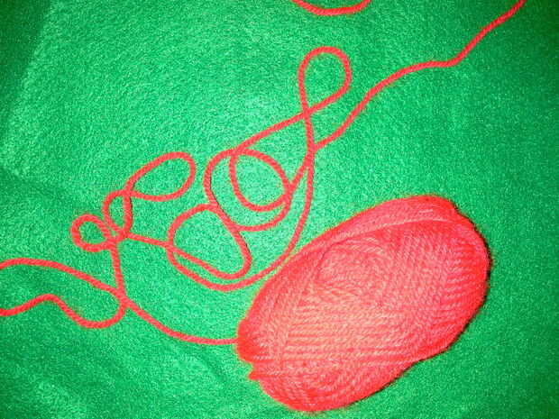 1. hilo - usaba una pelota de 100g de lana acrílico grueso, en color rojo brillante (sombra fue catalogada como 562)