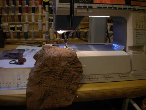 Tomar su peluca base para su máquina de coser o tomar su aguja e hilo. Coser a lo largo de la abertura sólo se cortan, como cerca del borde como sea posible. Esto hará que una peluca buena, segura y bien ajustada base.
