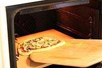 Poner la pizza en un horno precalentado 450 grados. De corteza suave, coloque la pizza en un horno de piedra o directamente en la rejilla del horno para una corteza más crujiente de madera. Hornea la pizza durante 10-15 minutos o hasta que la corteza es marrón de oro.