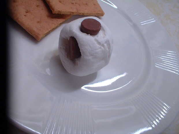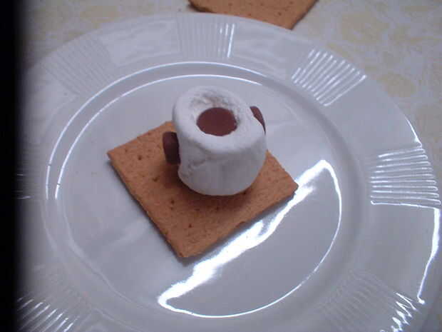 Poner todo en una oblea de graham para que no caiga de (Foto 3).