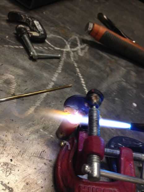 Usando una punta muy pequeña soldadura, preferiblemente 000 (Triple "debería"), en mi caso fue doble-debería y utilizando mecanismos de retención de trabajo apropiado, coloque la manija en la parte superior del cartucho y soldadura en... Ir fácil, que es mucho calor y latón fino!