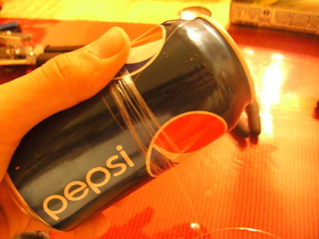 Para hacer su carrete, envuelva la cadena adjunta a la ficha alrededor de la lata no muy apretada y no muy suelta. Envuelva alrededor de 30 a 50 pies alrededor de la lata dependiendo de cuánto usted quiere que vaya. después de tener la cadena allí corta y sujetar en el extremo.