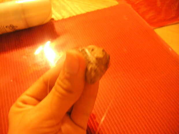 Obtener su rock y envolver la línea de pesca alrededor de la roca muescas y golpes, hasta que la roca no deslizarse lejos.  Poner unos buenos nudos en su plomo.