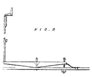Se salió un par de ejes de balancín de madera dura de 1 pulgada, que se extiende desde dentro del extremo bajo a aproximadamente una pulgada más allá de sus respectivos pedales, y pone un tornillo el centro en la parte interior abajo, A, Fig. 2. Cuando en su lugar, medir desde el exterior de la base al centro de cada eje de balancín y llevaba los pedales para el grifo del tornillo a la misma distancia de la marca.