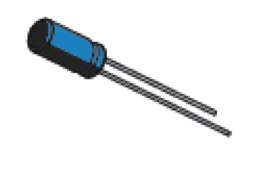 2. Conecte el extremo largo del condensador azul (10μF) al pin 1 y su extremo corto al pin 2. Puede que necesite doblar los alambres para que ajuste tanto como sea posible.