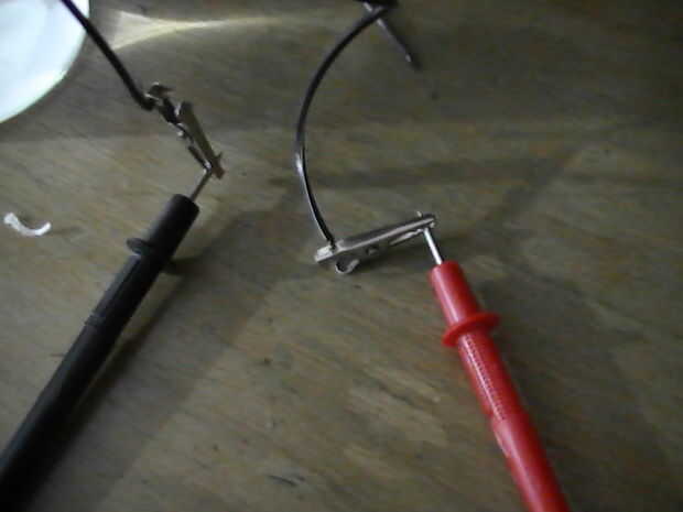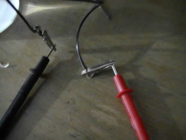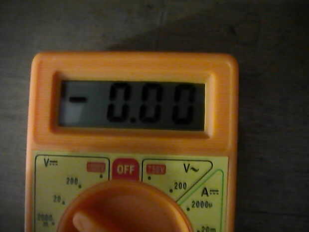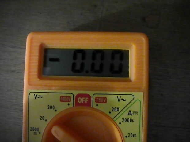 Primero, conecte el otro extremo de los cables de conexión al multímetro, y debe leer 0.001 o 0.000 Volts. Ambos están muy bien. Desconecte los cables de conexión del multímetro a continuación.