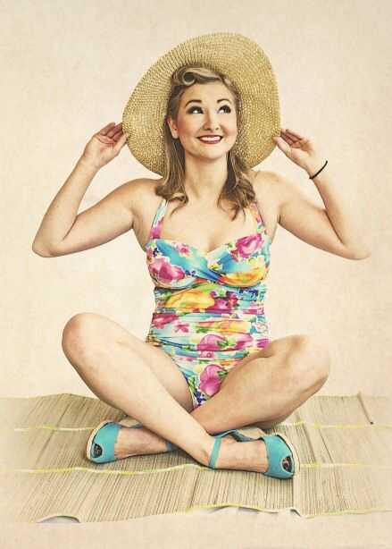 Agosto: aquí es donde Vanessa vistió mi traje de baño floral inspirado vintage y pulsó algunos pin real hasta posa para nosotros. Se ve increible debo decir.