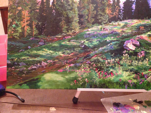 Seguir avanzando en la pintura, siempre a partir de bloques de color grande cada parte y luego añadiendo detalles.