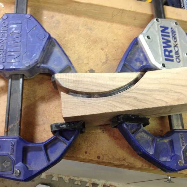 De antemano había tomado un bloque pequeño encima de la madera y cortar una curva en ella. Ahora. Simplemente intercala las virutas de la pintura de fundido en este bloque y sujeta en su lugar.