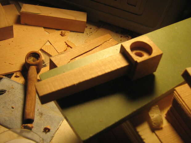 Una vez que la pipa cuadrada, redondear con la lijadora de banda y los raspadores. Tenga cuidado de no ir a través del material en el vástago o el tazón de fuente.