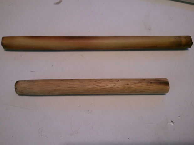Esto no es práctico para cualquier persona no cerca de una fuente de caña o bambú para hacer uno de una clavija o una rama ligeramente más grande que los tubos. Si su usa una rama que está completamente seco o simplemente la cura en algún lugar seco durante una semana o dos.
