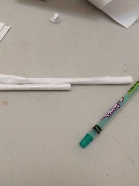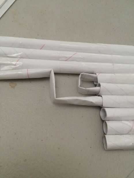 Hacer un tubo extra pequeño y hacer que el disparador. Hacer lo mismo pero 3 veces más grande. Y cinta de la pistola.