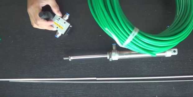 Para esta versión necesita un tubo, una válvula y un pistón. todos estos i encontraron en princesa auto que es un auto y granja de sobra. También compré un tubo hueco de aluminio para el cañón de la pistola y un sólido tubo de acero que encaja perfectamente dentro del tubo de aluminio para hacer un sello hermético.