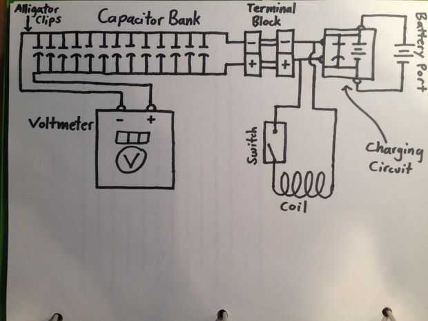 A continuación, desenrosque el plus y menos conexiones al bloque de terminales de la carga del circuito y atar en dos cables más. Por lo tanto va a ser 2 cables de la batería de condensadores en un lado del bloque, y 2 los cables del circuito de carga y 2 de la conexión del switch y la bobina en el otro lado del bloque terminal.