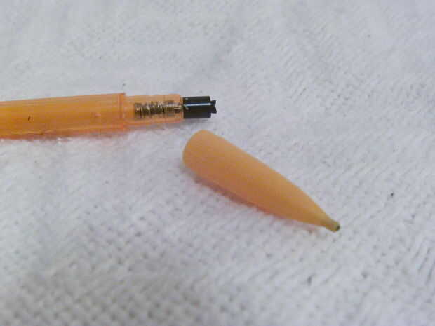 • A continuación, cortar el mecanismo en la parte inferior y "destripar" el lápiz.