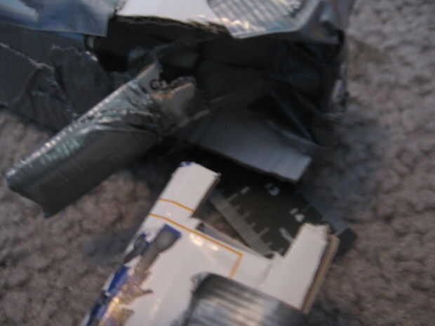 De la manija, muy bonito como el cañón, hacer los cuatro rectángulos, con cinta adhesiva junto, pero allí es algo importante en la 1 º foto que tienes que hacer. Solo otra vez, ver a continuación. =)