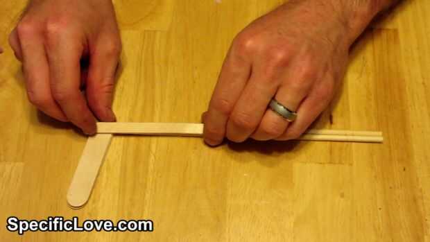 Ahora todo se voltea y pega el segundo palillo en su lugar. Si el exceso de cola ha exprimido hacia fuera, intente quitar sin quemarse.