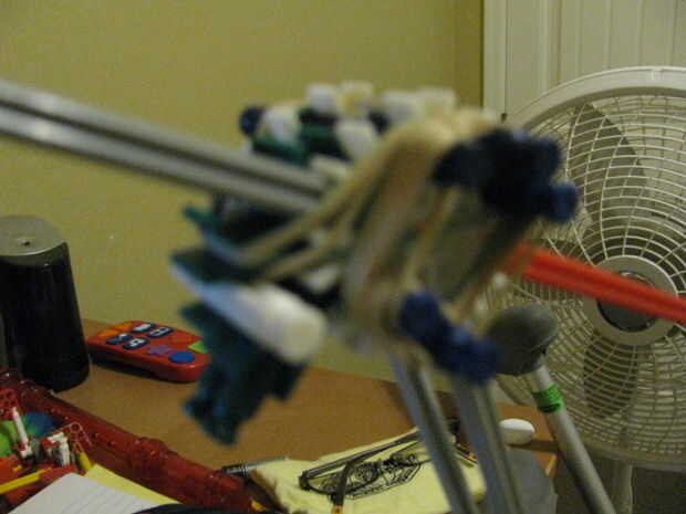 conector blanco dos (lo de cirle) y luego poner tres barras azul justo al lado de uno al otro el espacio de un salto y luego poner una varilla azul entonces tomar dos conectores verdes y poner una barra verde en cada uno y tomar una barra azul y ponerlo en el centro del conector verde y una barra blanca en el lugar justo al lado de las barras verdes y adjuntarlo como en la imagen y luego u squeez el blanco conectores hasta que toque los conectores verdes entonces tomar su cañón y conectar las barras grises a la u orificio abierto luego u tomar una banda elástica a la vez hasta u utiliza dos o tres y enróllelo alrededor de las barras azules hasta apretado y luego poner en uno de la "Y" buscando espacios. ahora se realizan su gatillo y el cañón.