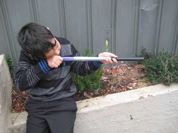 Utilizando cinta adhesiva firmemente apriete el dedo al cañón. Deje alrededor de 40-50mm de dedo que sobresale más allá del final. Esto es lo que se extiende para la pistola. Me dobla el extremo del corte sobre la cinta y luego con cinta hasta da más compra.