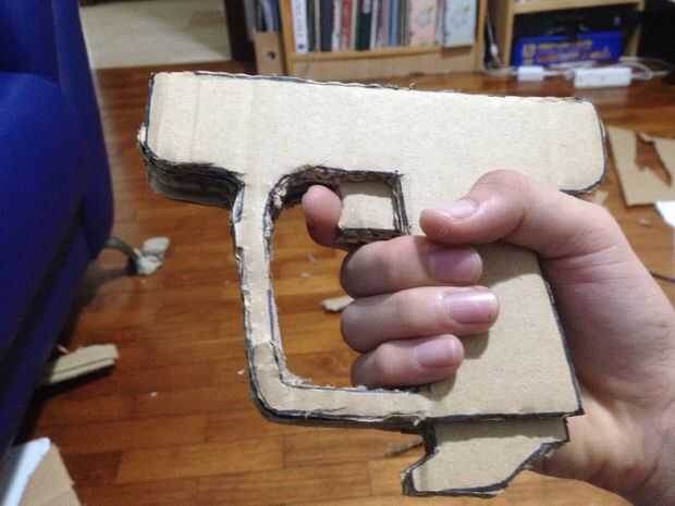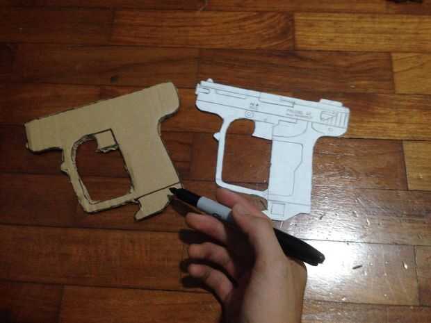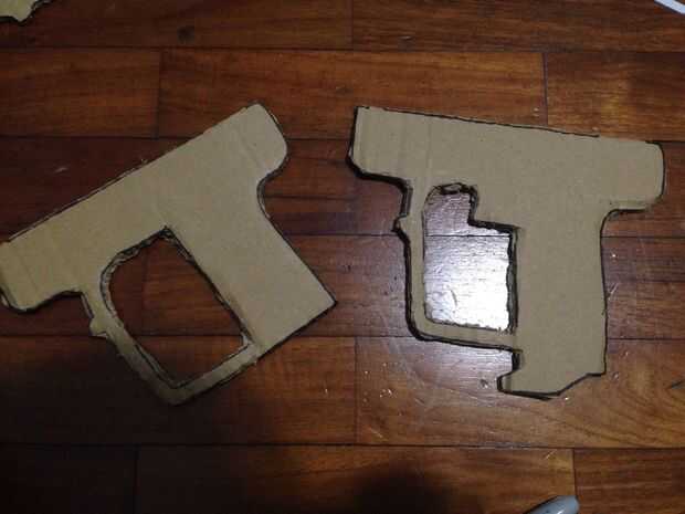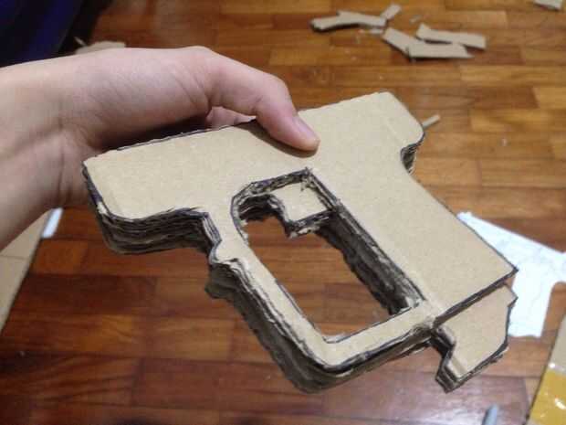 Para la pieza superior, corte el gatillo y la revista. Dejar las piezas internas. También tenga en cuenta que la parte superior de las capas exteriores es ligeramente más corta que las capas medias. Esto es para agregar profundidad a la diapositiva.