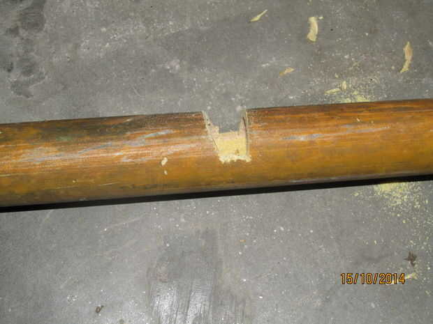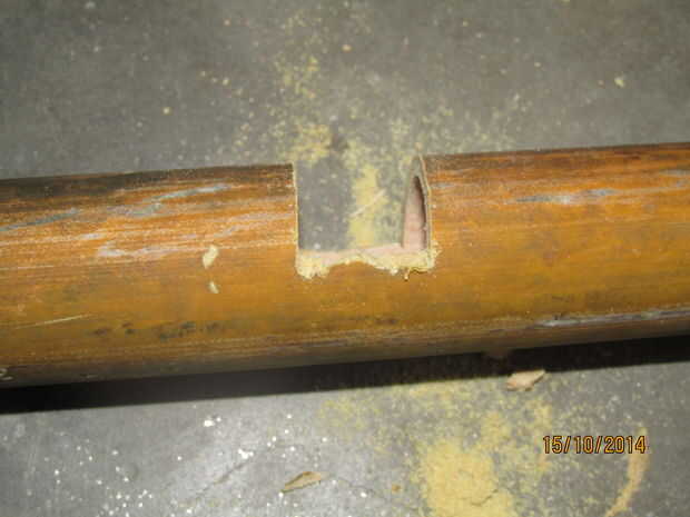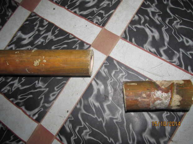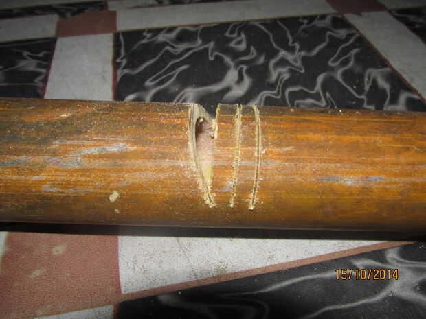 Unos 20 cm del extremo, hacer un corte casi a la mitad del bambú, luego hacer varios cortes diagonales y laterales más por lo que puede caber el cuchillo entre los a partir del bambú.