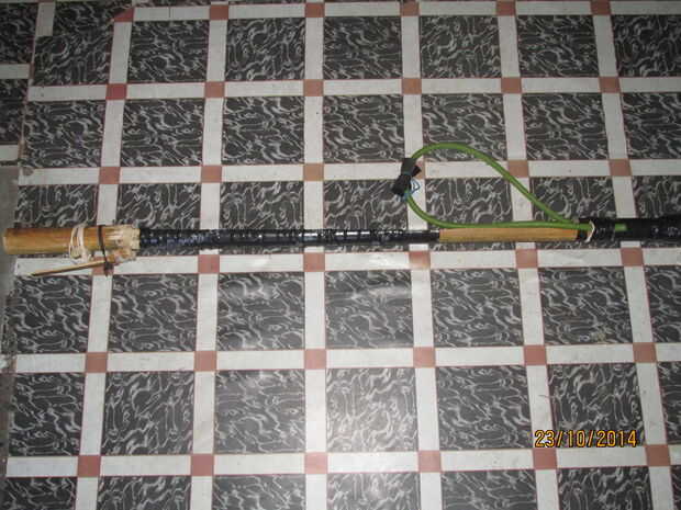 Para cargar y disparar, sólo tire de las bandas, enganchar el gancho del paracord sobre el clavo, encajar la lanza en el barril y la bolsa y tire la palanca hacia arriba. Esto forzará el cable de la uña, soltar la bolsa. Esta arma tiene un rango preciso de unos 5 metros.