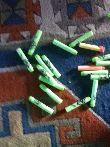 Primero necesita una pistola de nerf de cualquier tipo, luego necesitas una bala de nerf y una pluma, entonces necesita un par de tijeras y airsoft balas. necesita tirar de los extremos de la pluma y la punta de la bala de nerf. Ahora tienes que y pu