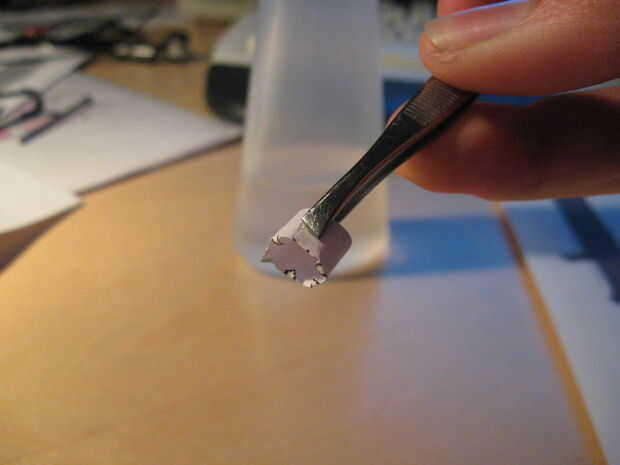 12. ahora utilizar sus pinzas para sostenerlos firmemente juntos, hasta que el pegamento es difícil de sostenerse. Sugiero usar pinzas, para que no te pegamento en tus dedos/manos demasiado. Y también esta parte del cañón era demasiado pequeña para mí celebrar juntos, así que tuve que hacer unas pinzas.