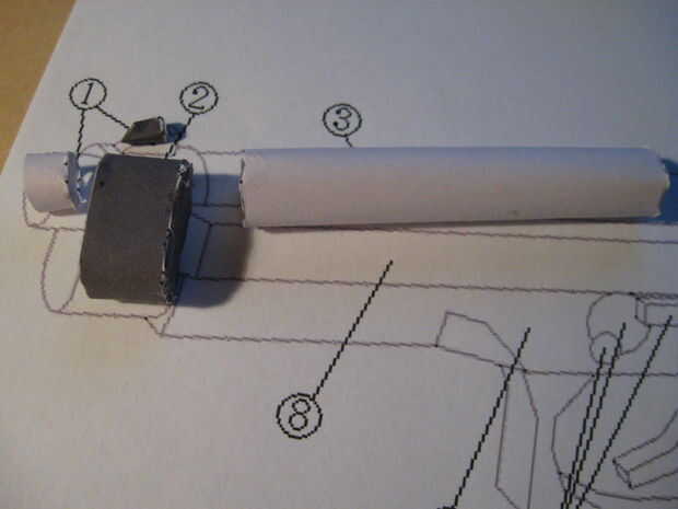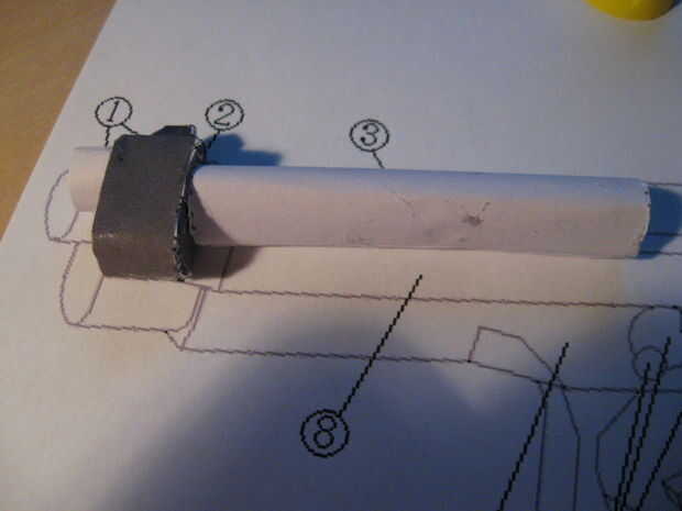 4. esto en primer lugar es el cañón, cortarlo todo y doblar las aletas.