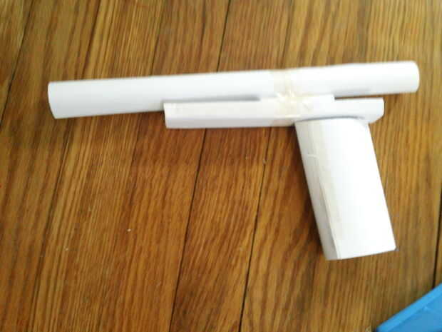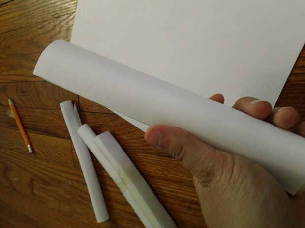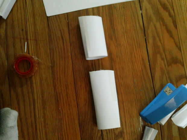 Usted luego corte el papel enrollado en ti la mitad de dosis no tiene que ser igual. Luego tomar la mitad más pequeña de la papel enrollada y cinta adhesiva a la base de su arma.