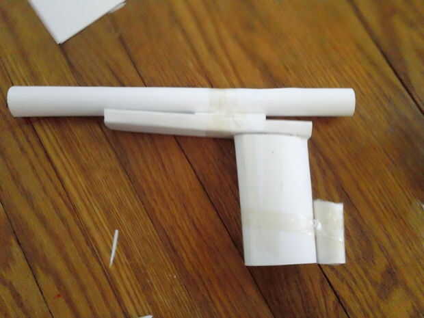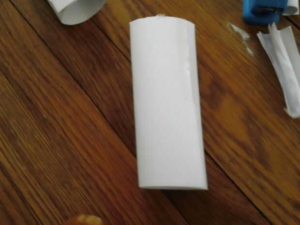 Tomar la pice extra y el pliegue en la mitad Asegúrese de que usted doble lanth sabio no con wise. También asegúrese de que es en forma de tubo. Después de que el corte un pice pequeño de uno de los extremos y tap en el bottem de la manija.